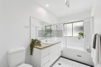- Tidy bathroom with combined bath and shower, brand new vanity