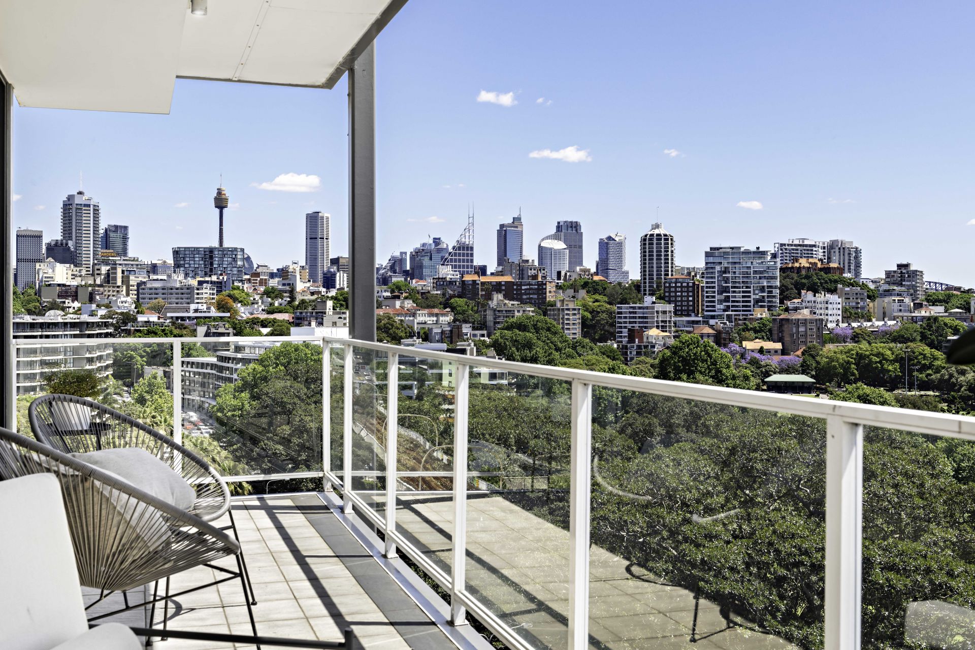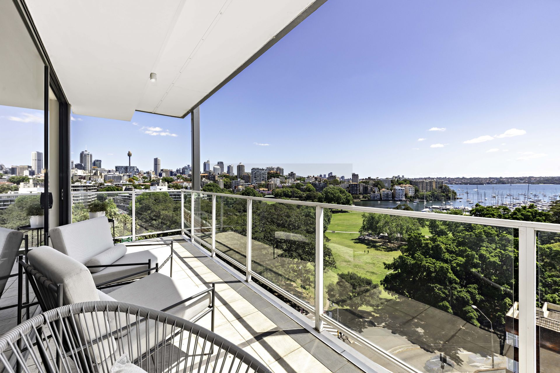 * North-facing balcony that captures views through to the water