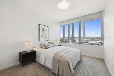 Immerse yourself in the sought after, north facing Ruby Tower, the crown of Victoria Park, where uninterrupted views stretch from every angle of the apartment and the living room captures a sweeping city skyline panorama. Designed by award winning architects Popov Bass and built by the reputable Hutchinson Builders, this two-bedroom residence sits just metres from East Village, parks, and transport, delivering a refined and connected urban lifestyle