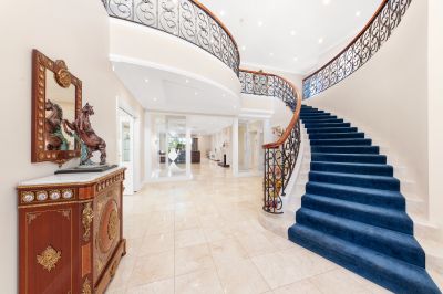 The majestic foyer, which features an imposing curved staircase, greets the visitor with an unrivalled sense of stateliness and grandeur.