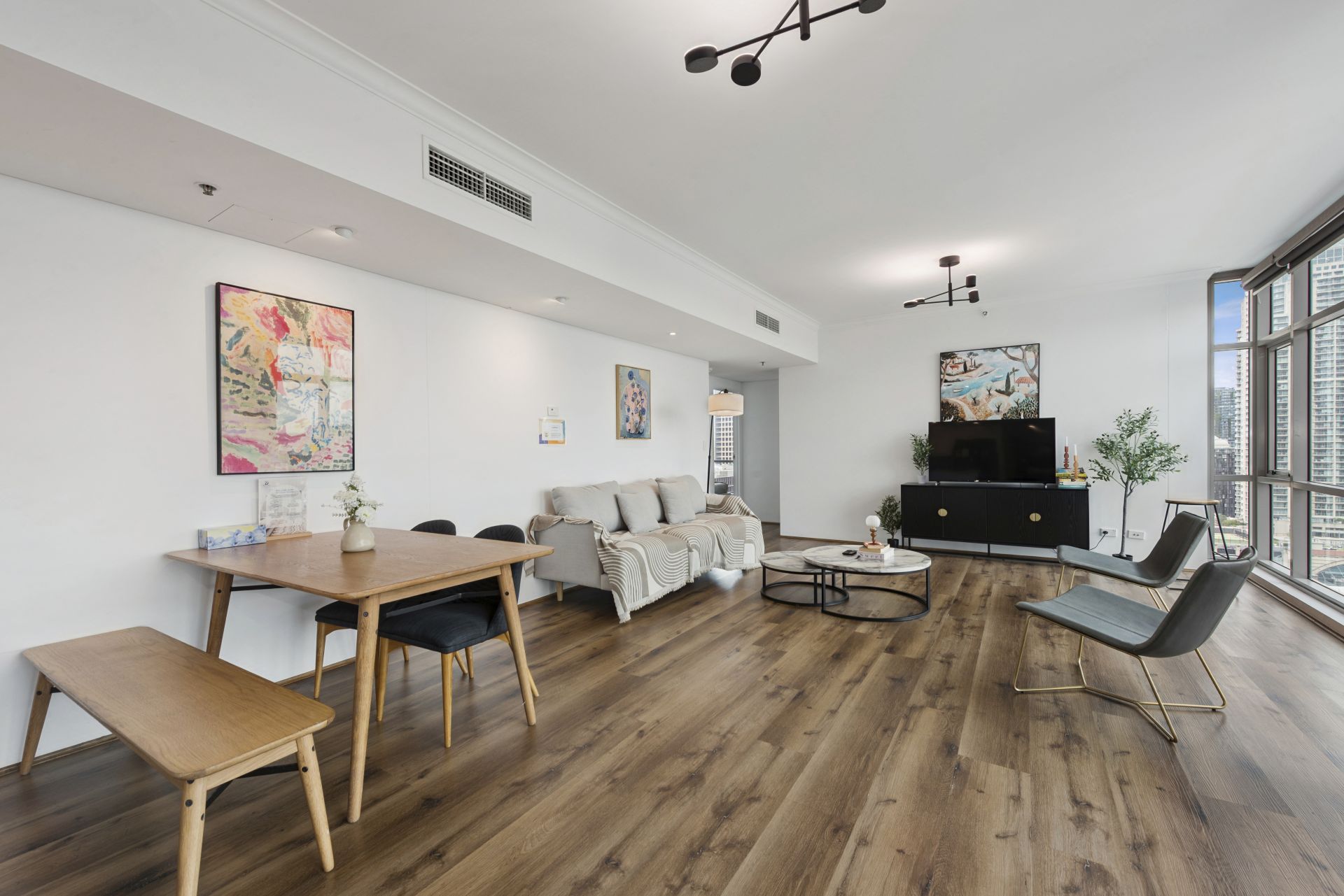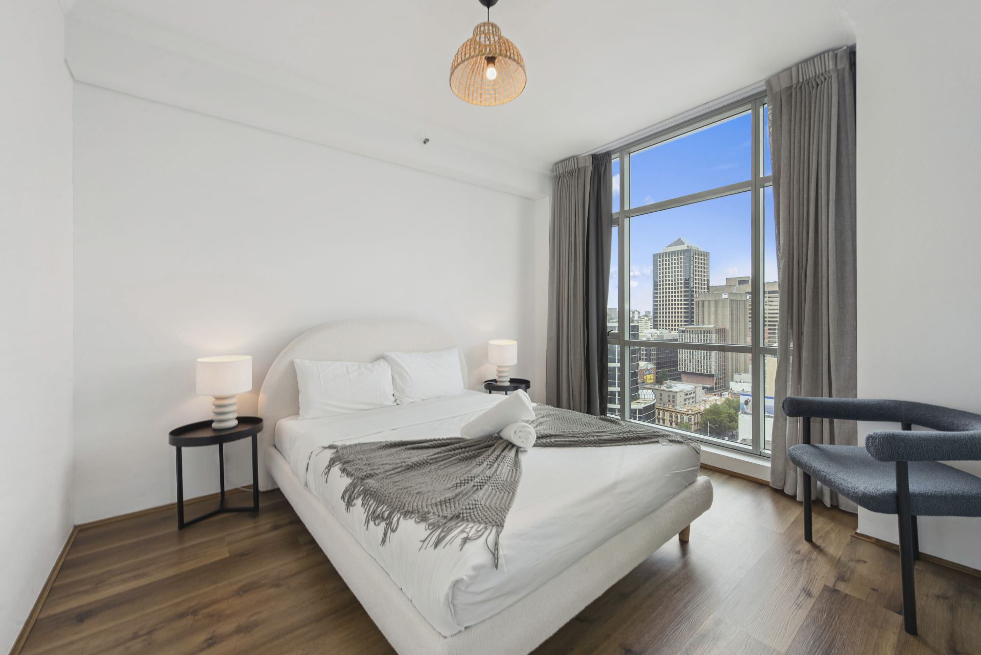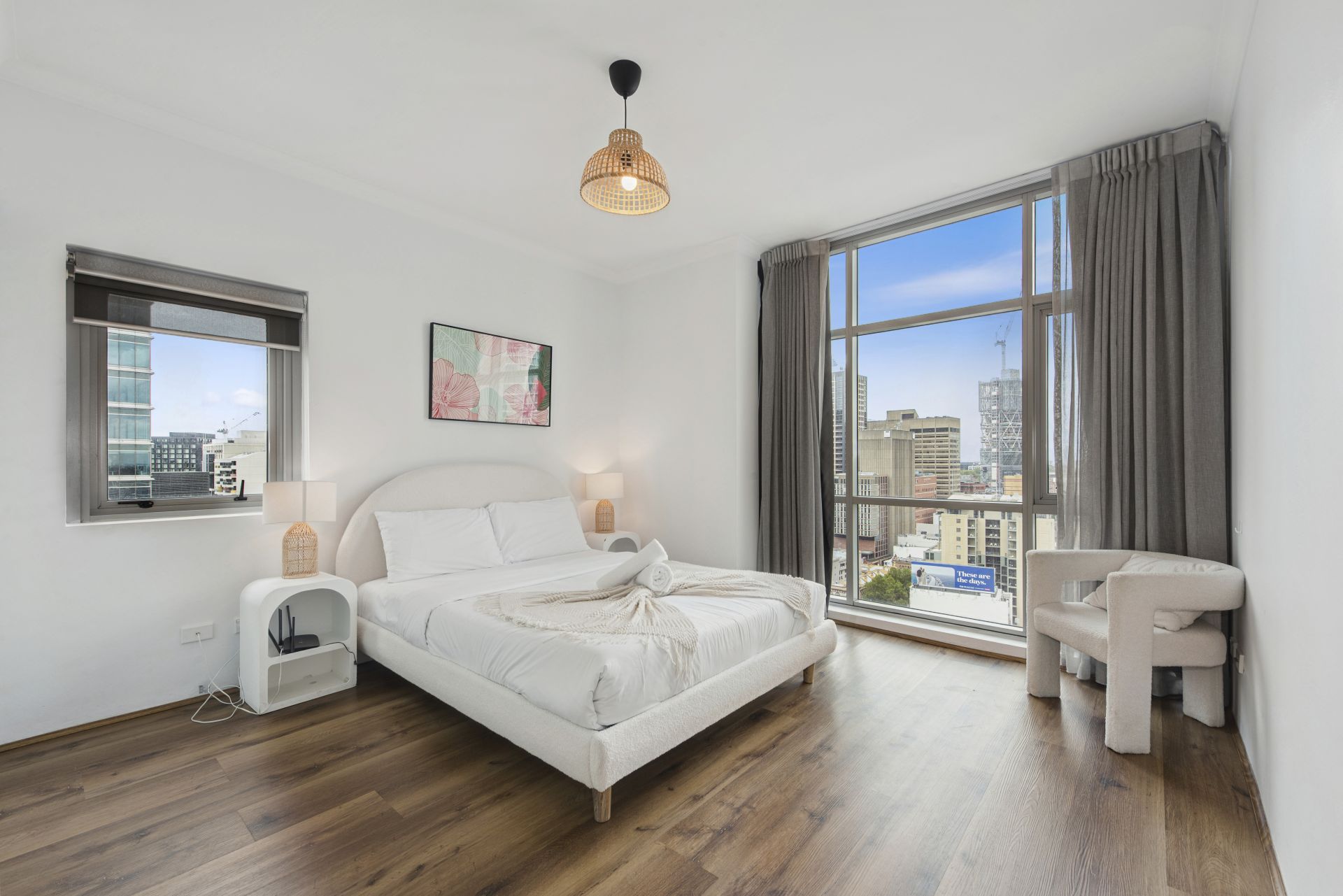 Windows on three sides and skyscraper views over the city